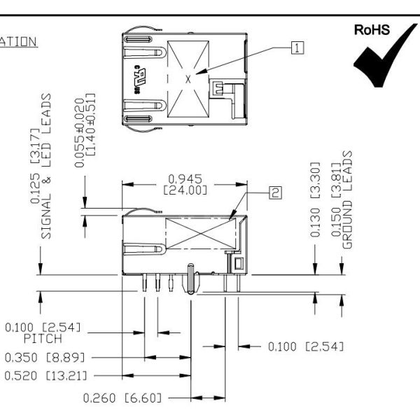 | Shield EMI Tabs | With | LED Option | Green&Yellow/Green |